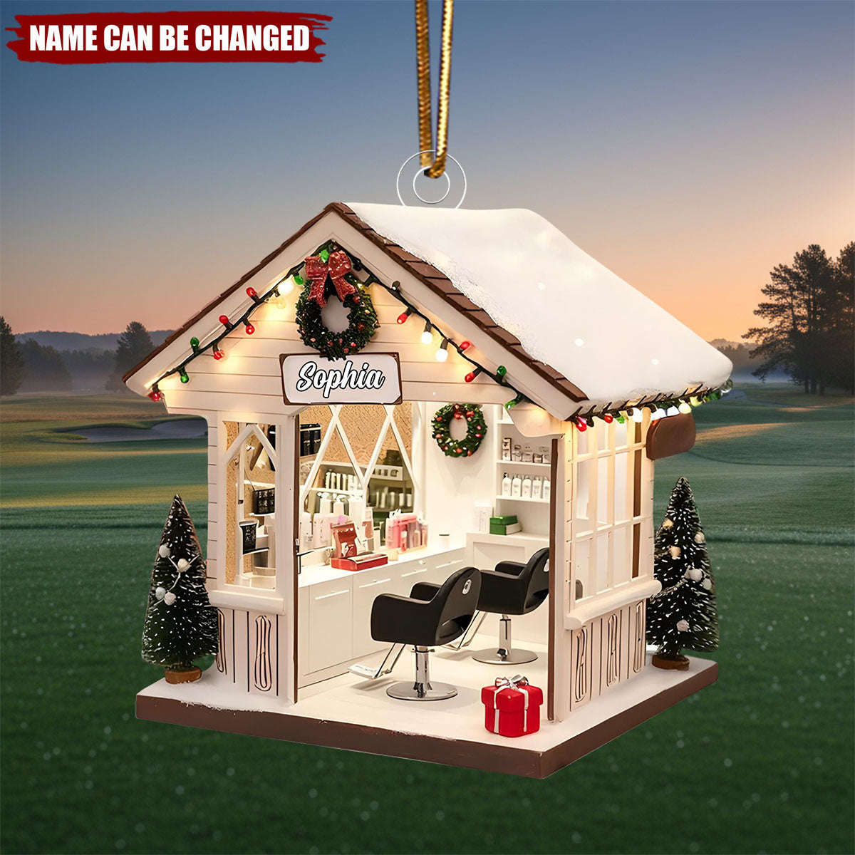 Personalized 3D Effect Winter Hair Salon Ornament With Name | Chic Christmas Gift For Hairstylist Hairdresser Cosmetologist