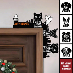 Skeleton-shaped cats and dogs are super adorable, and you can even customize your pet's image and name, bringing your furry friend's "Halloween Edition" look to your door. Add ghostly, tombstone-like elements to complete the ambiance. This personalized door corner wood sign is a unique gift that pet lovers will absolutely adore.