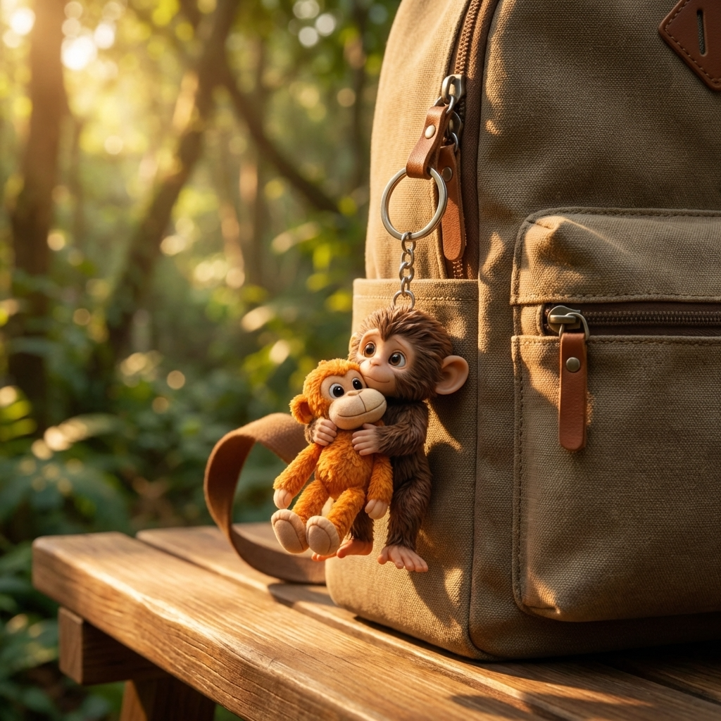 This adorable plush monkey keychain features acrylic design with two cuddly monkeys. Customize it with a name to create a charming, personalized accessory—perfect for bags, keys, or as a heartfelt gift for children and animal lovers on special occasions.