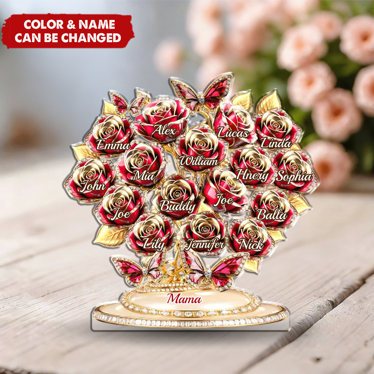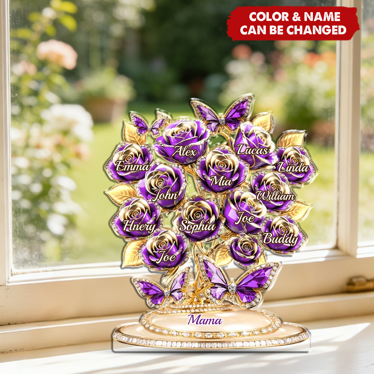 Personalized Butterfly & Roses Family Tree Acrylic Plaque With Family Names - Birthday Surprise Mother's Day Gift For Mom & Grandma