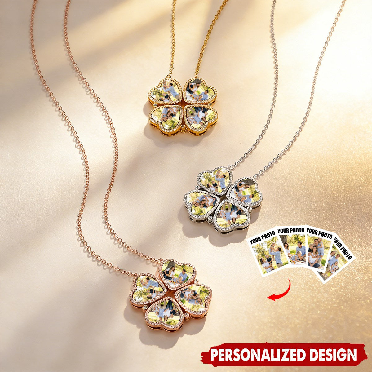 📸 Personalized Photo Customization:Holds up to 4 personal photos, capturing precious moments. The four-leaf clover/heart design adds a touch of ceremony.