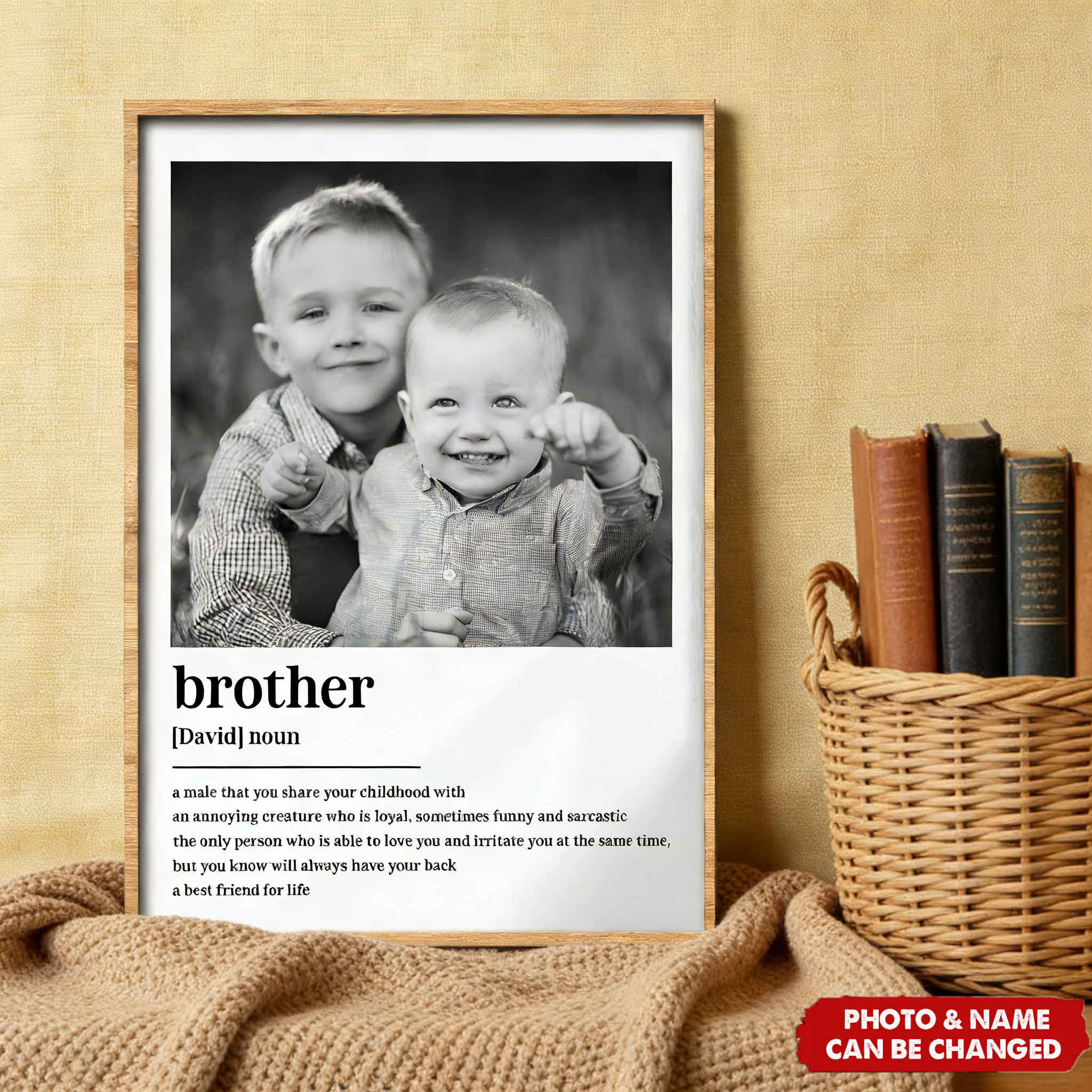 He’s the one who shared your toys, kept your secrets, and occasionally drove you crazy—but you wouldn’t have it any other way. Our Personalized Brother Definition Wall Art is a heartwarming tribute to that unbreakable bond. Combining a classic dictionary-style layout with your own custom sibling photo, this piece turns a simple memory into a professional work of personalized home art.