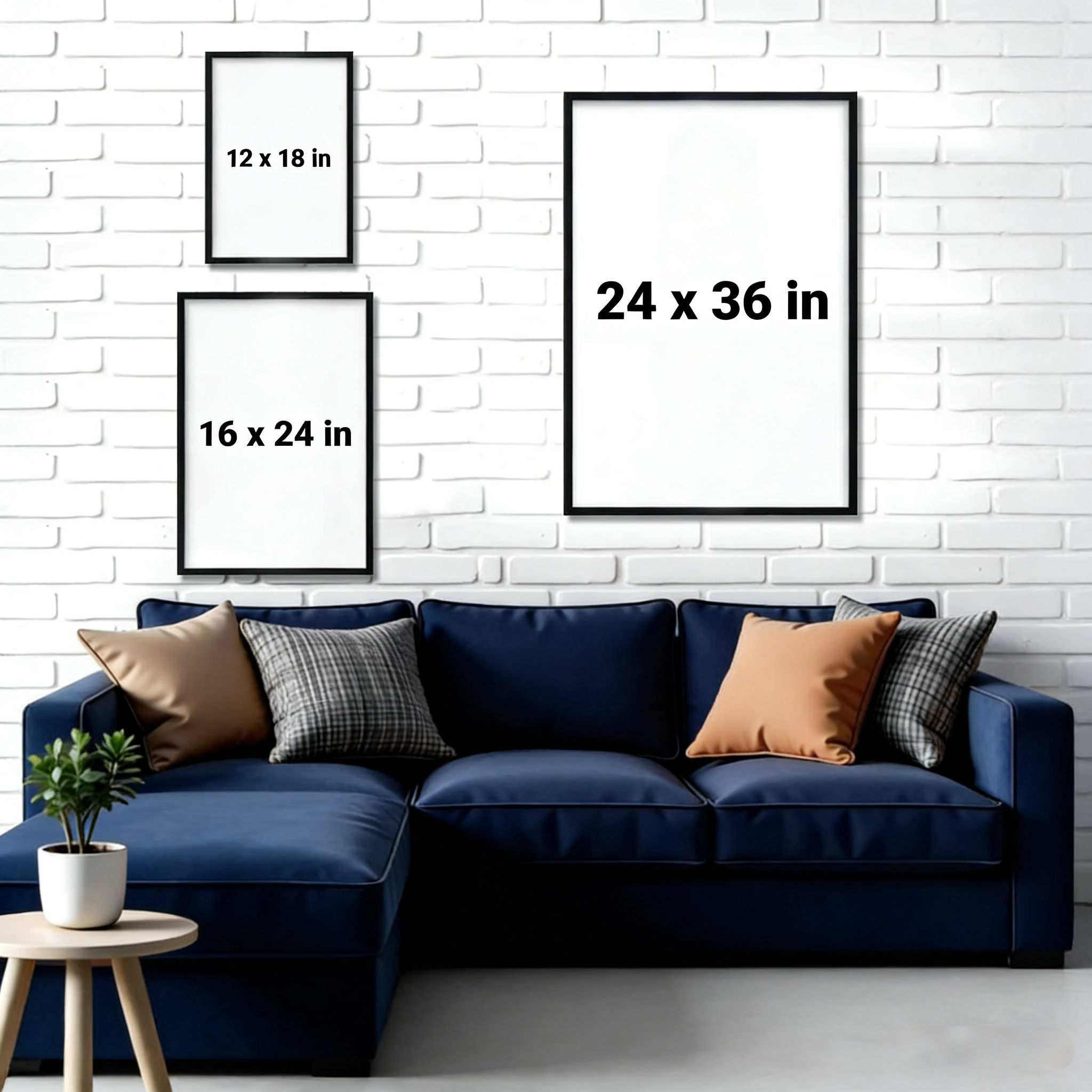 Sizes: 12 × 18 in (30 × 45 cm), 16 × 24 in (40 × 60 cm), 24 × 36 in (60 × 90 cm)