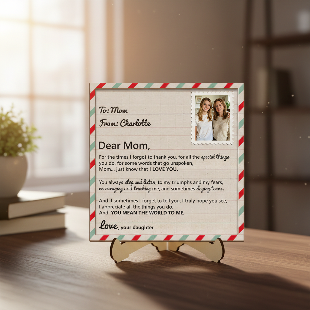 Sometimes, the strongest emotions are the hardest to put into words. Our Personalized "Unspoken Words" Wooden Plaque is designed to bridge that gap. With its innovative 2-layered design, this piece of wooden art gives physical form to your gratitude, ensuring Mom feels your love every time she glances at her shelf.