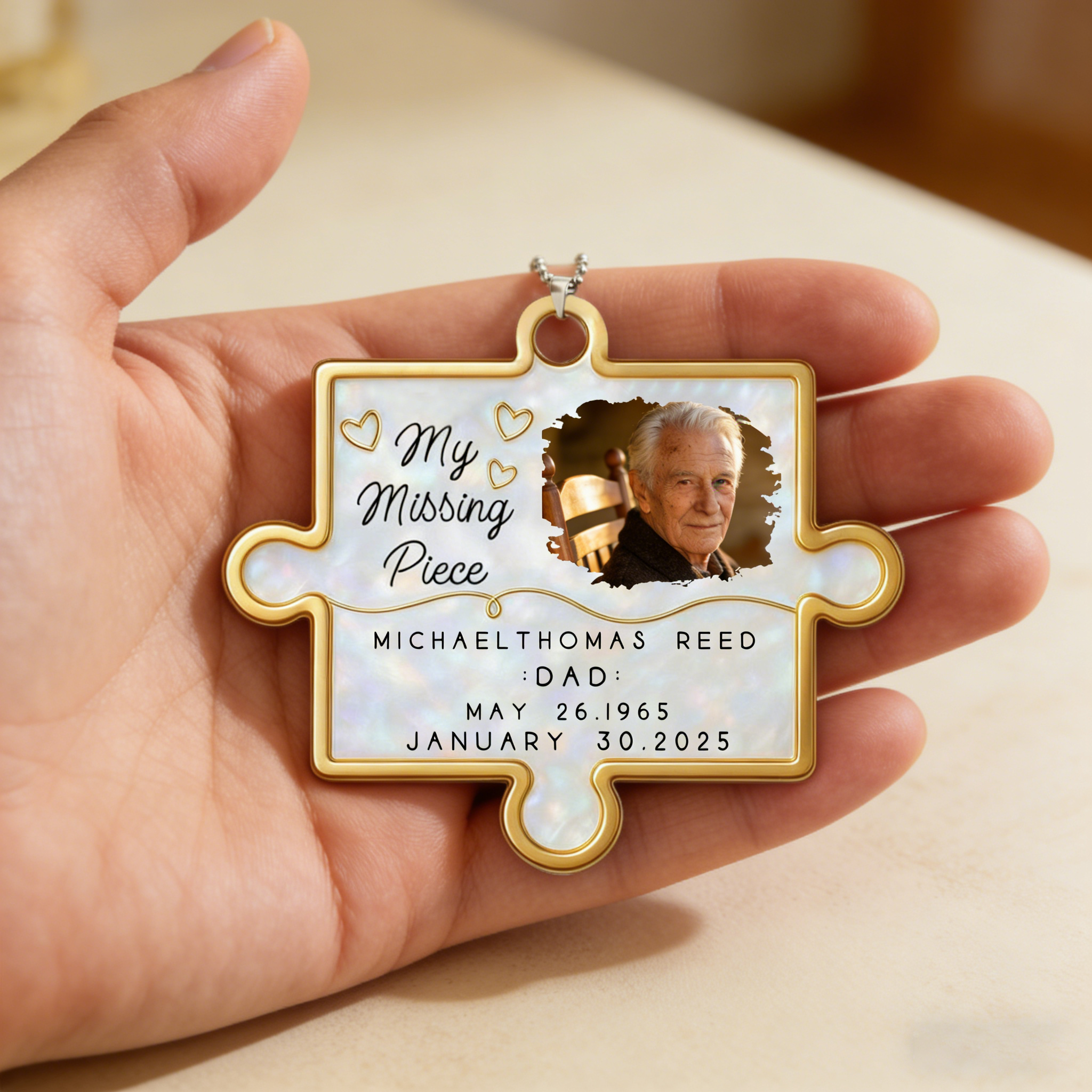 Grief is a journey, and having a small reminder of a loved one can make the road ahead feel a little less lonely. Our Personalized "Our Missing Piece" Ornament is a touching tribute designed to keep their memory alive. Whether it’s a parent, grandparent, or dear friend, this custom photo keepsake ensures their smile continues to light up your daily drive.